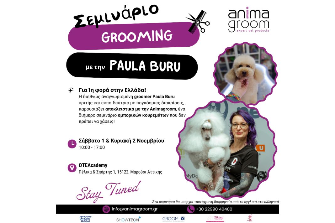 Η Animagroom διοργανώνει νέο σεμινάριο επαγγελματικού grooming με εισηγήτρια την Paula Buru στις 1 και 2 Νοεμβρίου 2025 στην Αθήνα.