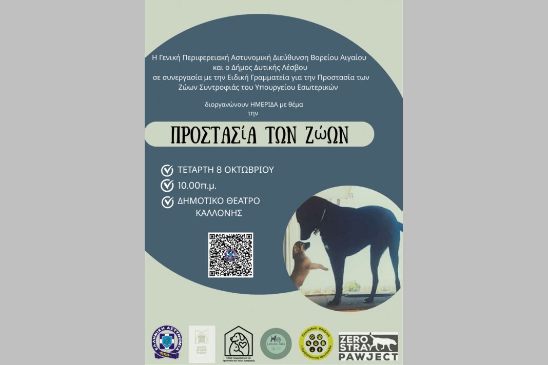 Σημαντική ημερίδα αφιερωμένη στην προστασία των ζώων θα πραγματοποιηθεί την Τετάρτη 8 Οκτωβρίου 2025 στις 10:00 το πρωί στο Δημοτικό Θέατρο Καλλονής στη Λέσβο. Η διοργάνωση ανήκει στη Γενική Περιφερειακή Αστυνομική Διεύθυνση Βορείου Αιγαίου και στον Δήμο Δυτικής Λέσβου, σε συνεργασία με την Ειδική Γραμματεία για την Προστασία των Ζώων Συντροφιάς του Υπουργείου Εσωτερικών.