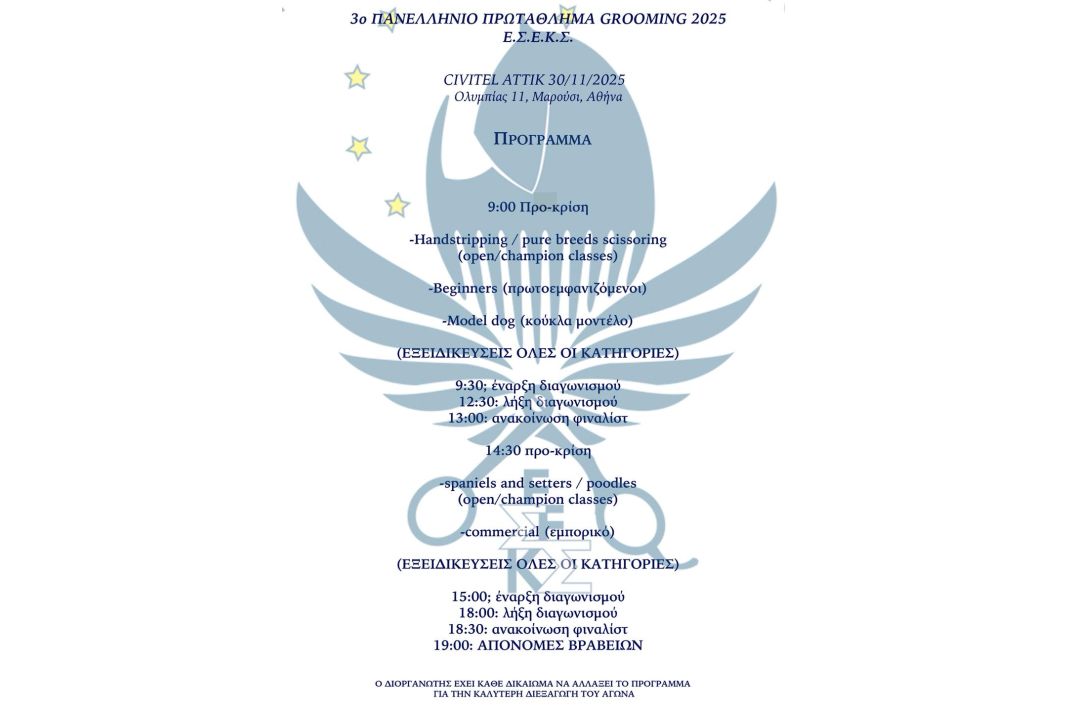 Το 3ο Πανελλήνιο Πρωτάθλημα Grooming συγκεντρώνει τους κορυφαίους επαγγελματίες του χώρου.